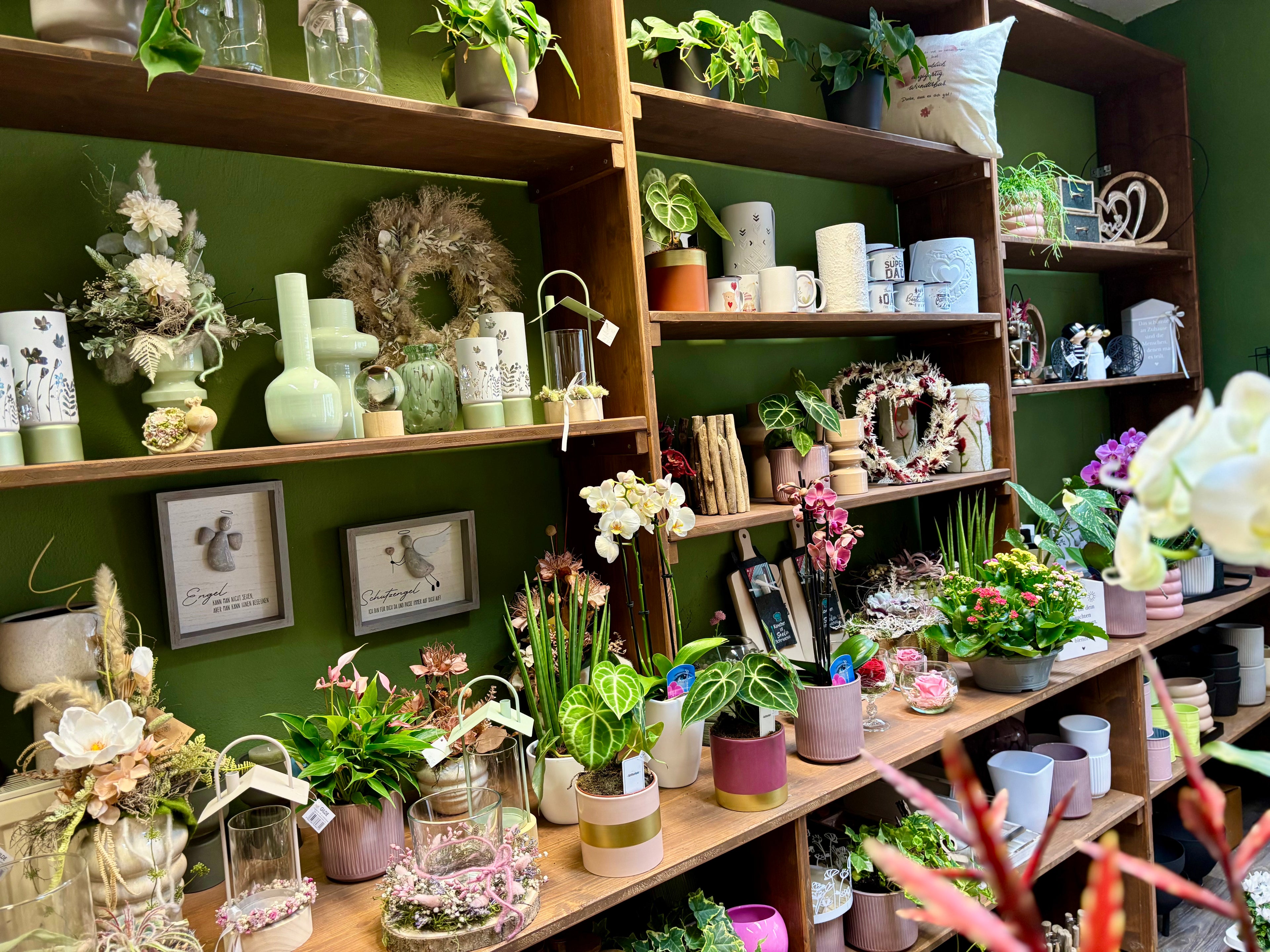 Bei uns findest du nicht nur Blumen und Pflanzen, sondern auch liebevoll ausgewählte Deko- und Geschenkartikel, einige davon handgemacht.